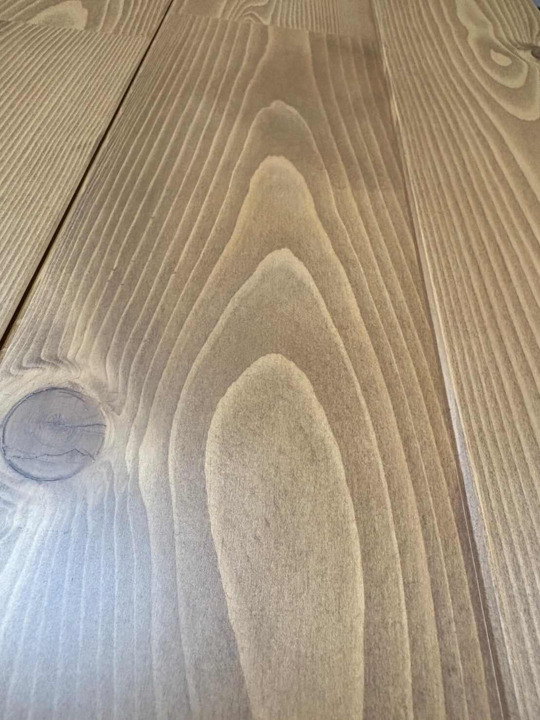 樹脂の塗膜でフローリングを保護しているため、自然塗料での施工に比べて